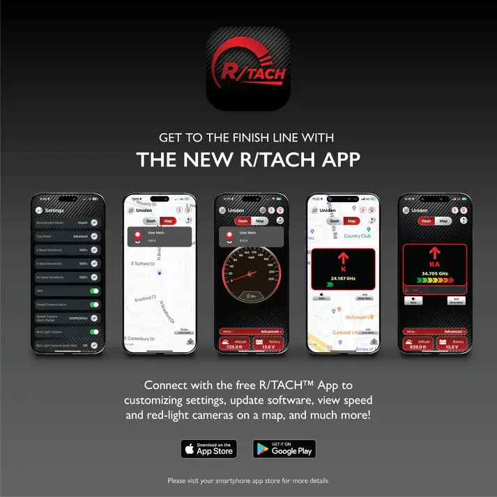 The R4w laser/Radar detector continues Uniden’s tradition of leading innovation. Featuring extreme long-range performance, a Blackfin® DSP (Digital Signal Processor), and visual and voice alerts on an OLED display. Also, Wi-Fi, Bluetooth, GPS, R/TACH app support, and our speed and red-light database, etc. With our exclusive proprietary technology, the R4w number one feature is unparalleled performance. Also, the R4w features Auto Learn which greatly reduces false alerts over time giving you the quietest ride. When you need the best, and none of the fluff, Uniden’s R4w puts you miles ahead.
